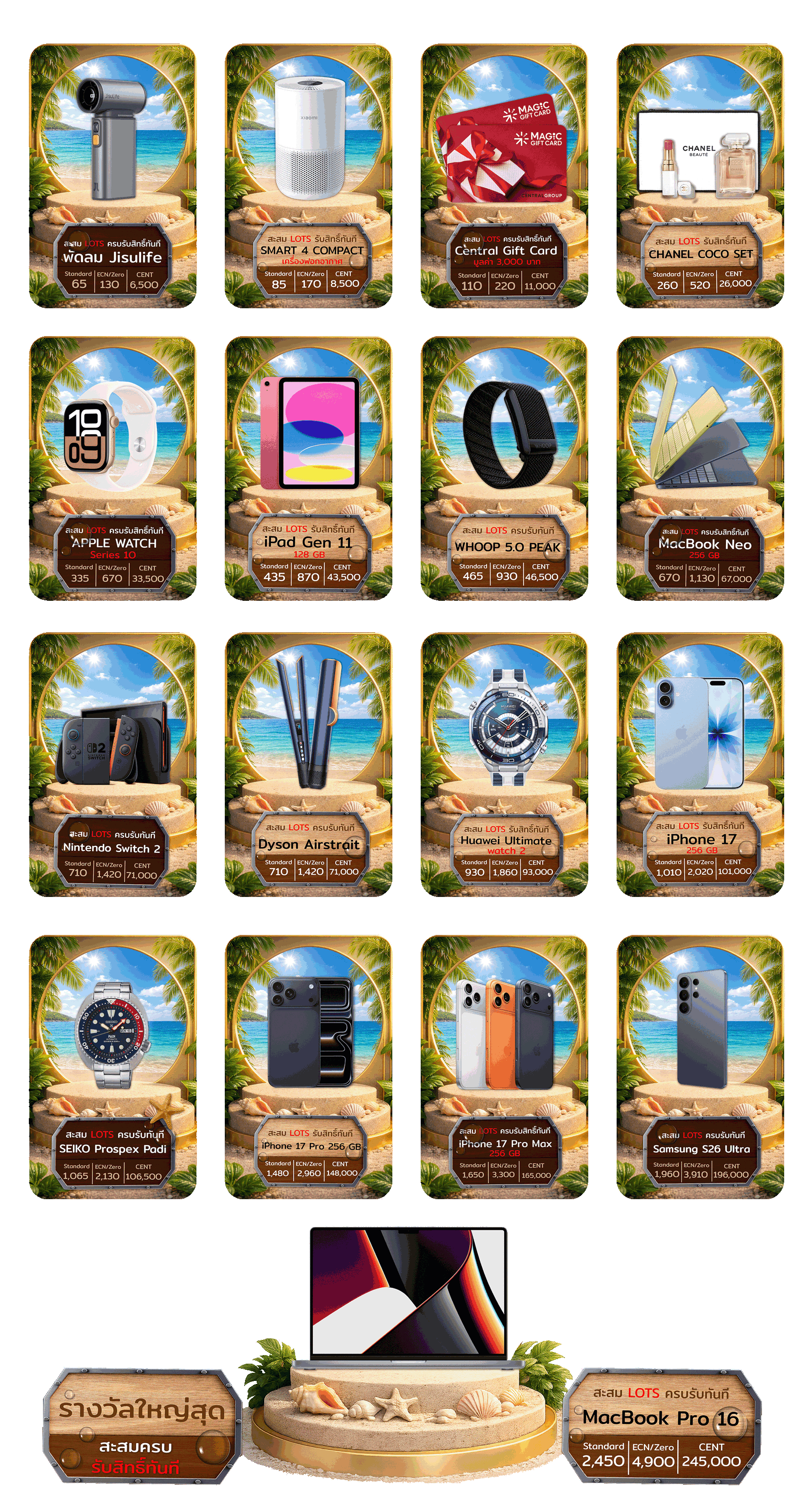 - ของรางวัลสามารถเปลี่ยนรางวัลเป็นเงินสดได้ในมูลค่า 70% ของมูลค่ารางวัลที่กำหนด โดยบริษัทขอสงวนสิทธิ์ในการพิจารณาและกำหนดมูลค่าเงินสดสุดท้ายแต่เพียงผู้เดียว